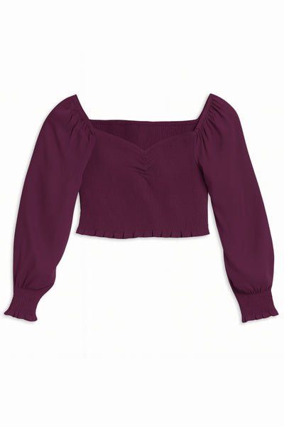TWEEN SHARI SMOCKED CROPPED SOLID TOP